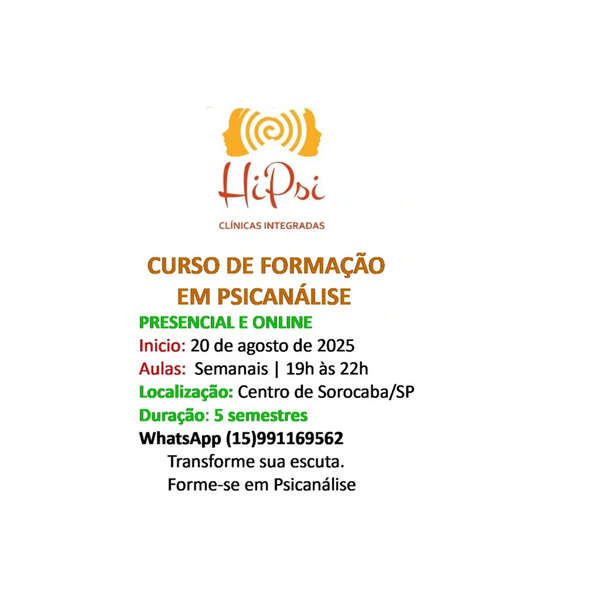Nosso Curso de Formação em Psicanálise, com turmas presenciais e online, proporciona a possibilidade de uma nova profissão e dá aos nossos alunos oportunidade de ajudar adequadamente aos que sofrem dores emocionais e doenças psicossomáticas.